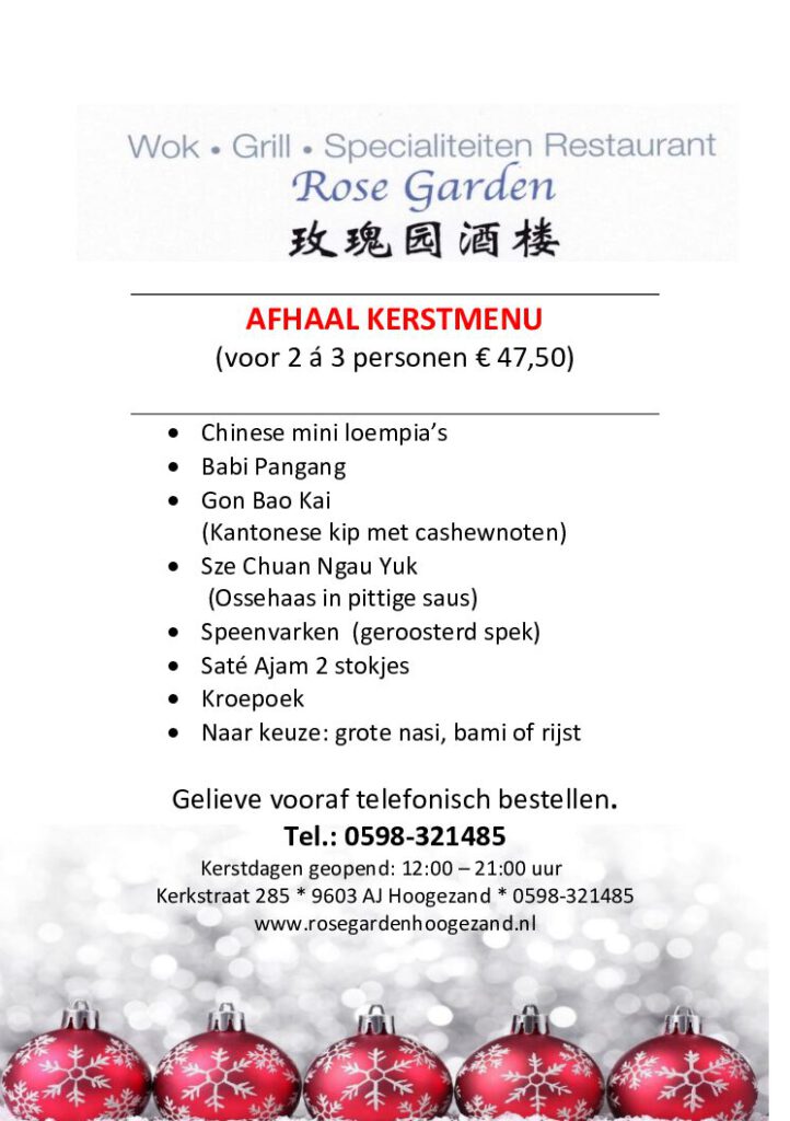 Tijdens deze dagen bieden wij het kerstmenu aan, waardoor ons maandmenu vervalt. Aanpassing van het kerstmenu is niet gewenst. Uiteraard kunt u ook de gerechten/rijsttafels uit de menukaart bestellen.